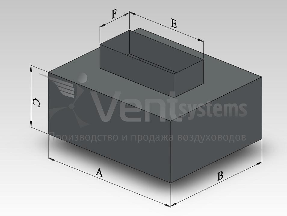 Пленум - воздухозаборное устройство, применяемое для смешивания свежего наружного воздуха с уже циркулирующими в системе потоками. У данного пленума прямоугольная врезка расположена сверху короба.
